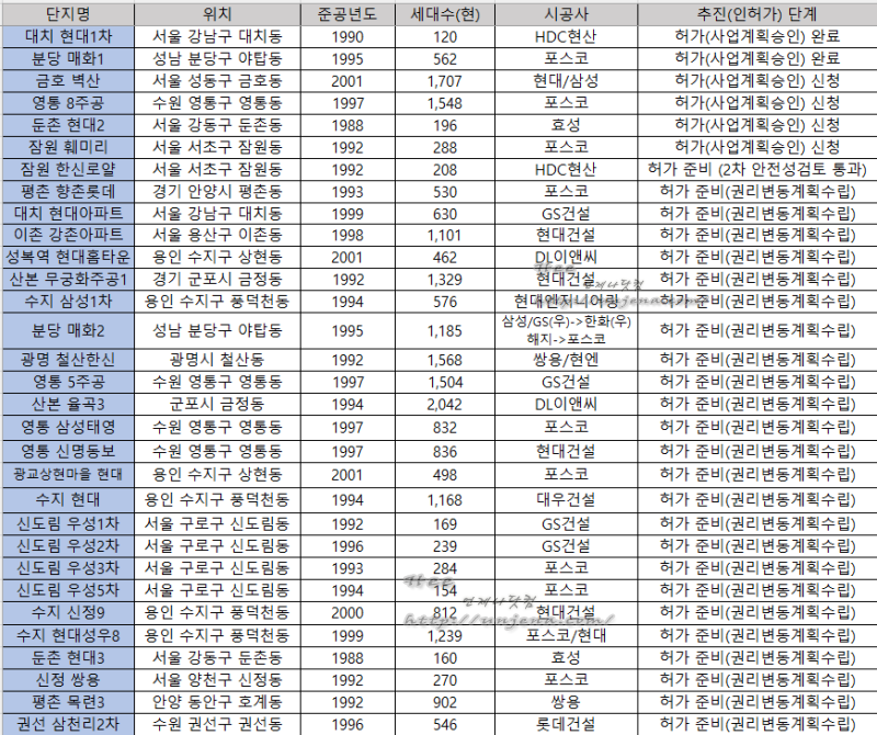 분당 매화마을1차의 허가동의율이 확보되어 허가준비로 수정하였습니다.