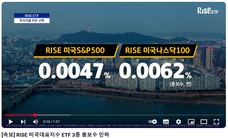 이번에 RISE 미국S&P500은 0.0047%로, RISE 미국나스닥100은 0.0062%로 인하했습니다.
