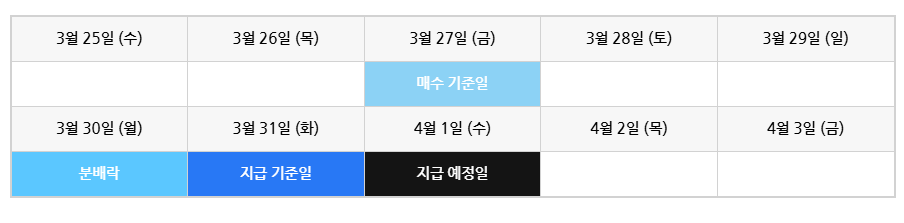 다행히 3월에는 연휴가 겹치지 않아 공백 없이 분배금 지급이 진행됩니다.